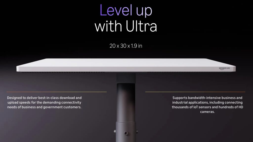 La gamme de produits d’Amazon, baptisée Amazon Leo, comprend trois terminaux distincts : le Nano, le Pro et l’Ultra. Chacun de ces terminaux dispose de caractéristiques spécifiques visant à répondre à différents segments du marché.