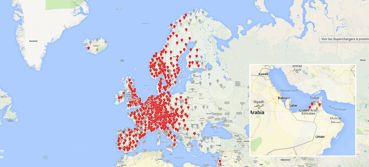 Par ailleurs Tesla est aussi le seul constructeur de voitures électriques qui assortit son offre de voitures d’un accès à un réseau de rechargement ultra rapide (250km en 30’).