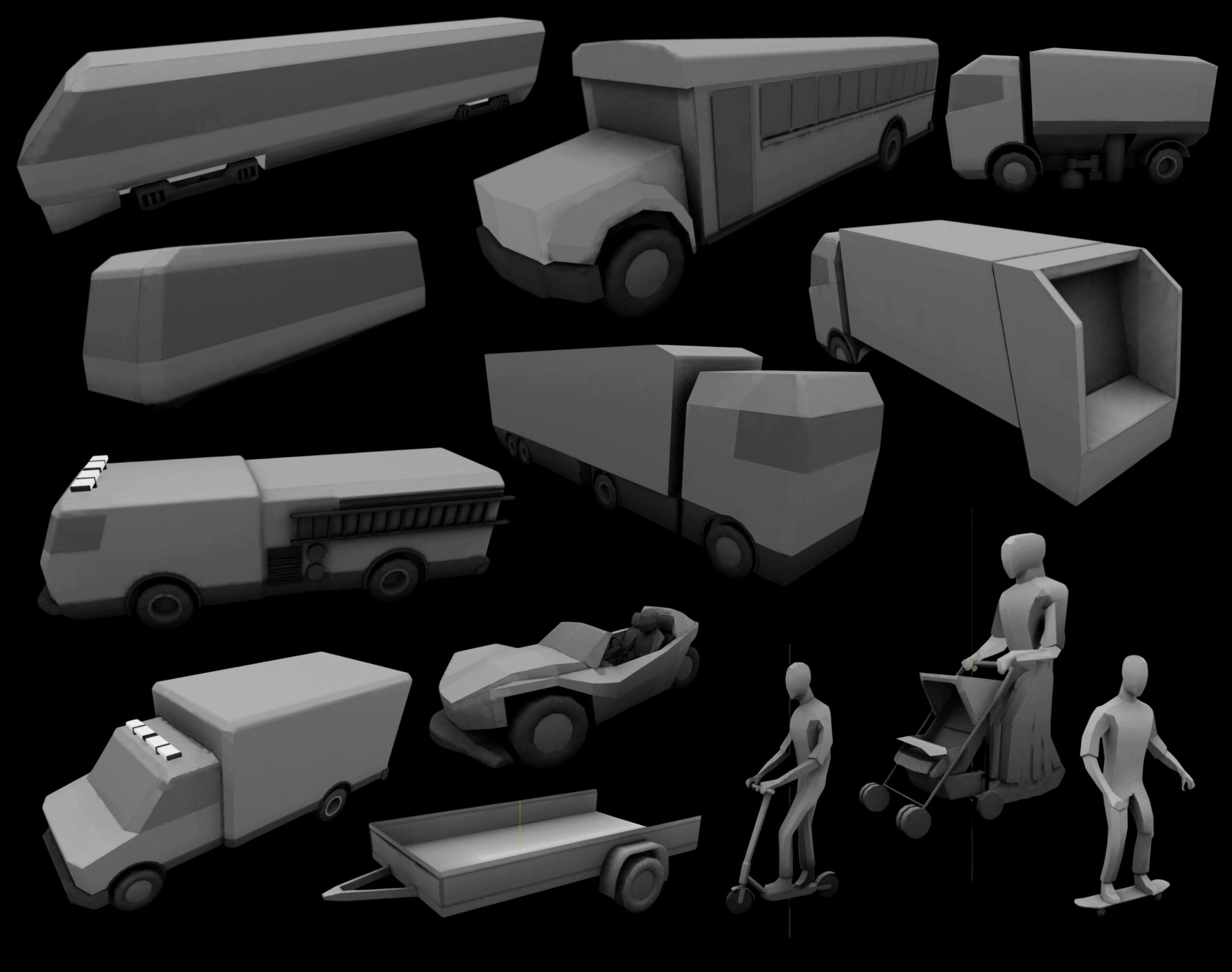 - Des représentations tridimensionnelles des véhicules (avec ombres, perspectives et proportions réalistes)