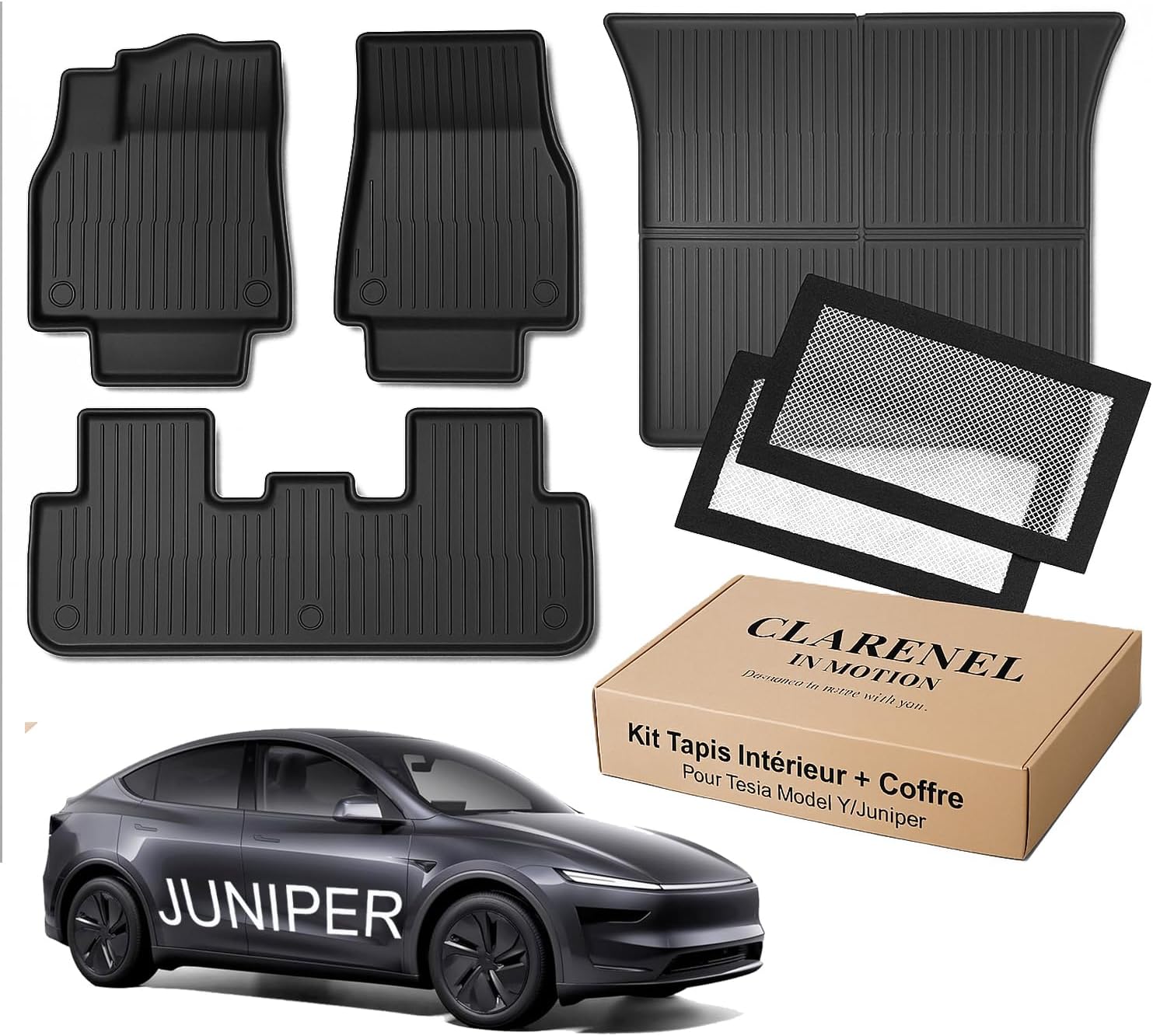 La marque CLARENEL IN MOTION propose ici un Kit Complet TPE qui garantit un ajustement parfait pour le nouveau design intérieur de la Model Y, offrant une protection intégrale de l’habitacle et du coffre.