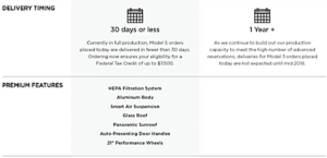 Cerise sur le gâteau: une livraison à 30 jours (aux USA bien sûr et seulement là bas contre plus d’une année pour le Model 3 …