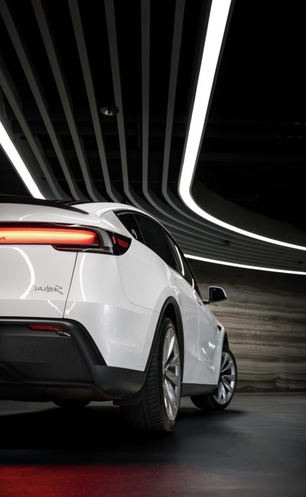 En conclusion, cette séance photo réussit un coup de maître : elle transforme un véhicule de production de masse en une icône de design, prouvant que l’électrique peut être synonyme d’esthétique et de performance captivante, même à l’arrêt. C’est une célébration de la forme pure du Model Y, mis en scène comme une sculpture de lumière et d’ombre.