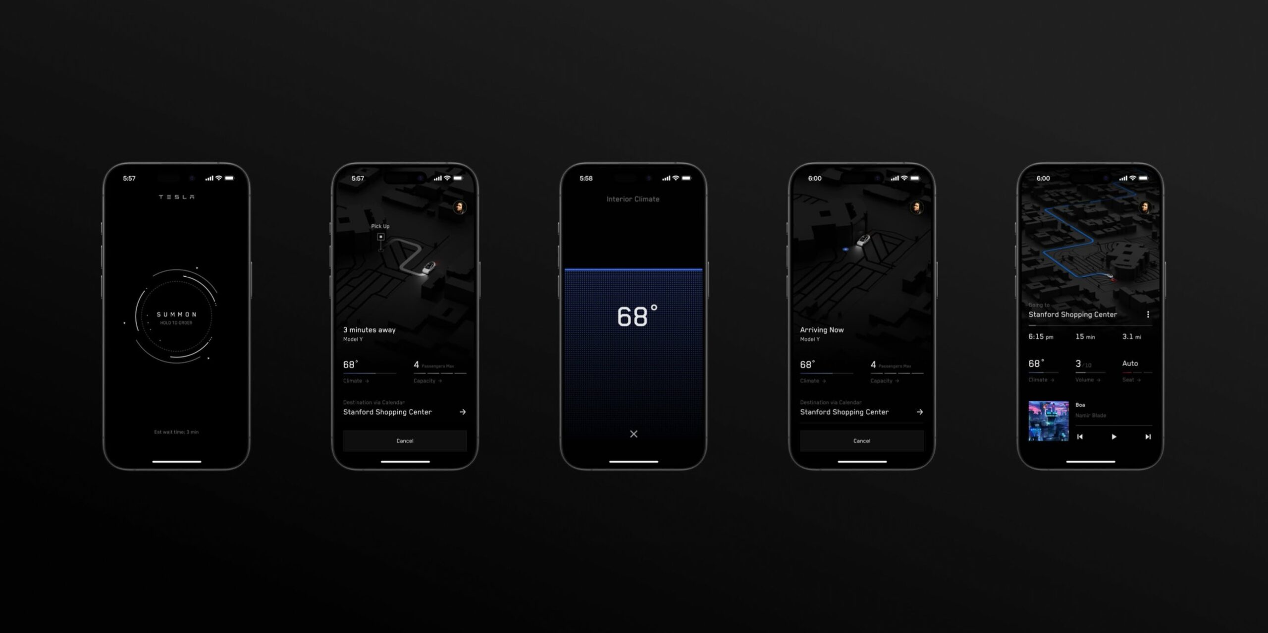 The Tesla app shows several features that will be at the heart of its ride-sharing service. The interface includes options such as ‘Summon’, which allows the car to come to your location, and the ability to track the car’s journey to you in real time. The user can also adjust the car’s interior climate before arrival, ensuring an environment to their liking.