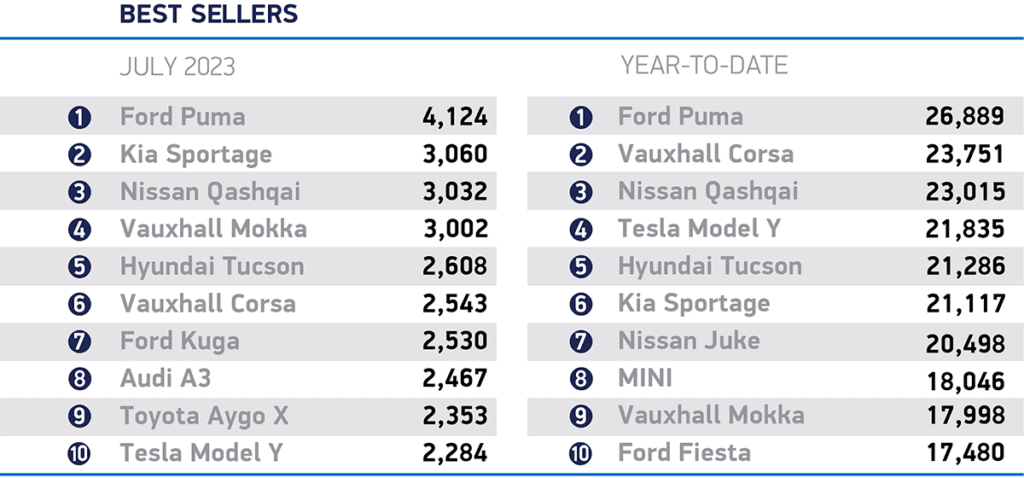 Strong sales over the past months of the year provided an excellent strengthening of Tesla Model Y’s position in the automotive market as a whole. With 21,835 units sold, the electric SUV was the fourth best-selling vehicle in the first seven months of 2023. Model Y trailed Ford Puma (26,889) in first place, Vauxhall Corsa (23,751) in second, and Nissan Qashqai (23,015) in third.