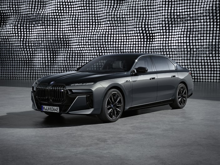Les Séries 7 hybrides se démarquent de l’i7 par un bouclier différent. BMW se montre verbeux s’agissant des blocs hybrides à 48V essence et diesel. Quand le premier (760i xDrive) jouit d’un V8 de 544 ch, le second (740d xDrive) laisse s’exprimer 300 ch par le biais d’un 6-cylindres en ligne. En tout électrique, l’i7 fera valoir en premier lieu une xDrive60 développant 400 kW (544 ch) en passant par deux électromoteurs alimentés par une batterie de 101,7 kWh visant une autonomie maximale de 625 km WLTP. En attendant d’être secondée par une variante plus sportive (i7 M70 xDrive) culminant à 485 kW (660 ch).