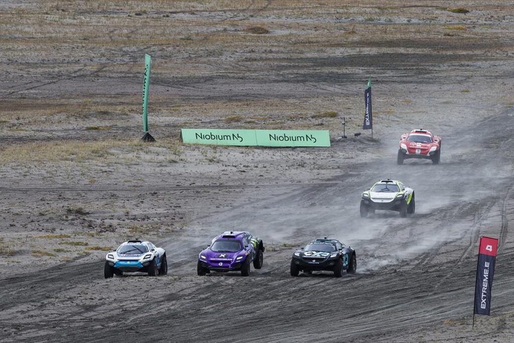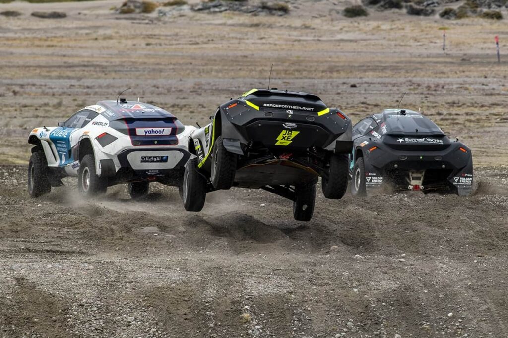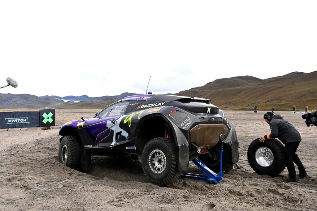L’équipe de Lewis Hamilton, X44, était bien partie pour jouer un rôle dans la grande finale à cinq, mais Cristina Gutierrez et Sébastien Loeb, le nonuple champion du monde des rallyes, ont vu leurs espoirs s’évanouir quand ils ont découvert une grosse crevaison de leur pneu arrière droit, lors de leur passage au stand. Le changement de la roue, même rapide, leur a coûté leur avantage de 19 secondes sur le reste de la meute.