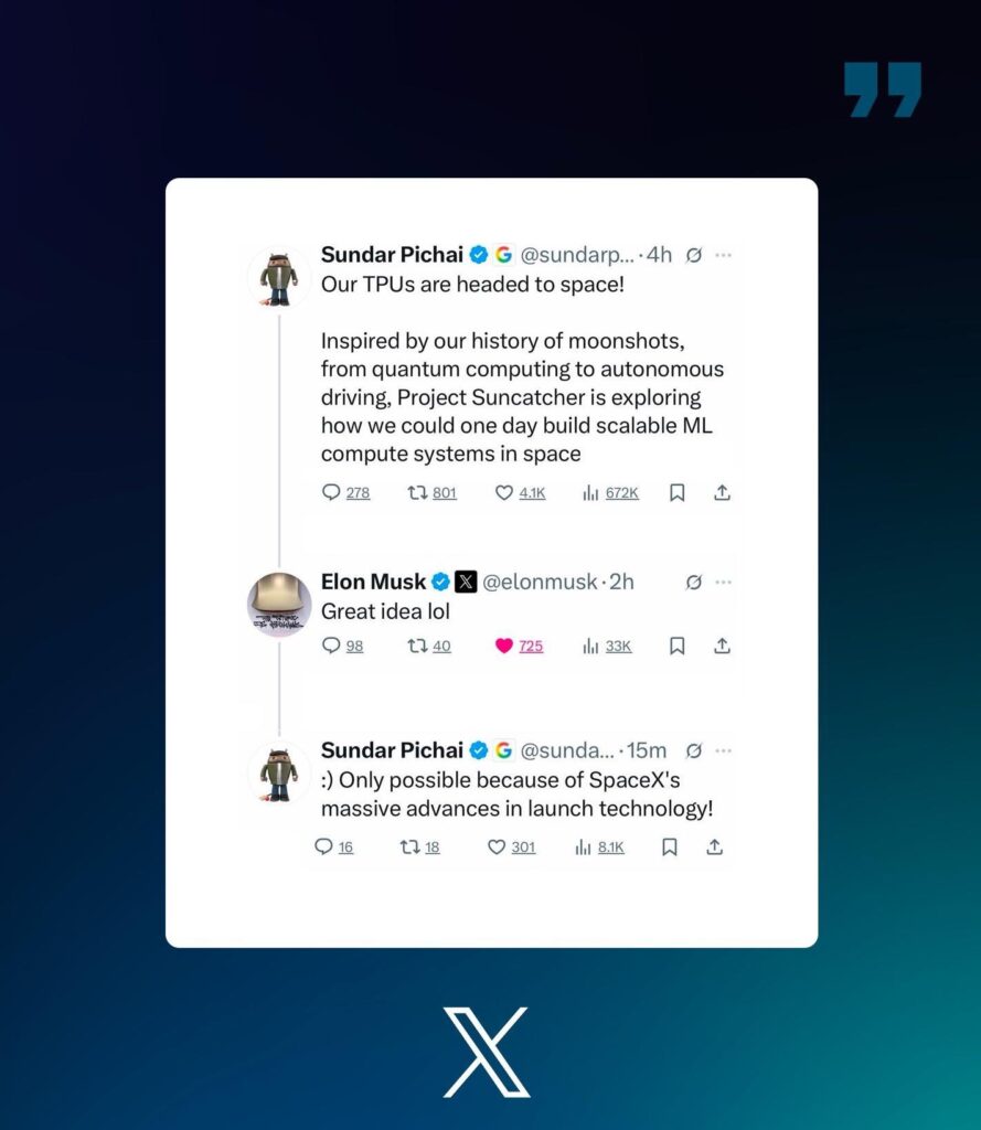 Cette interaction entre Sundar Pichai et Elon Musk symbolise la convergence entre deux révolutions : l’intelligence artificielle et la conquête spatiale.