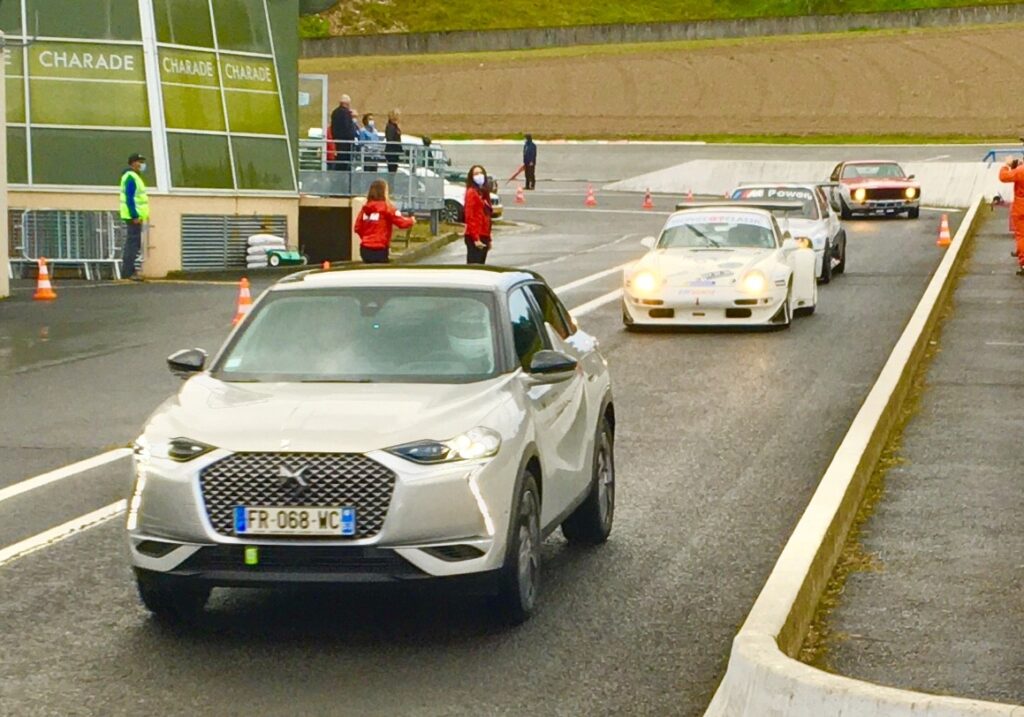 C’est donc cette superbe DS3 Crossback e-tense que Didier Malga a découverte à Charade le week-end dernier, pour emmener les pelotons de voitures d’époque (monoplaces, protos, etc.) pendant les tours de chauffe et de formation, dans toutes les catégories, en alternance avec la Tesla Model 3 qui servait aussi de safety car.