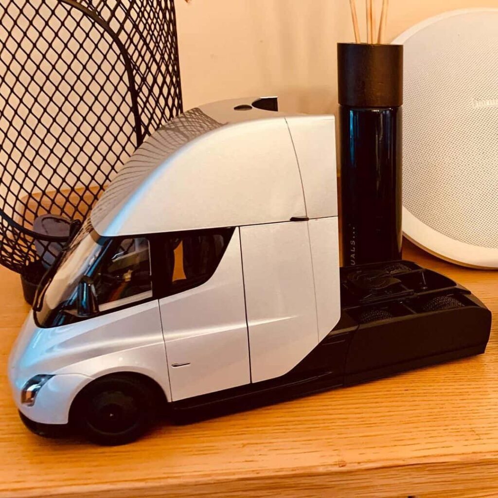 Nous ne rêvons pas. Ils sont bien là, à la rédaction. Devant nous. Le Tesla Semi et le Tesla Roadster rouge en format 1:24! Vous pouvez également les acquérir dès maintenant!