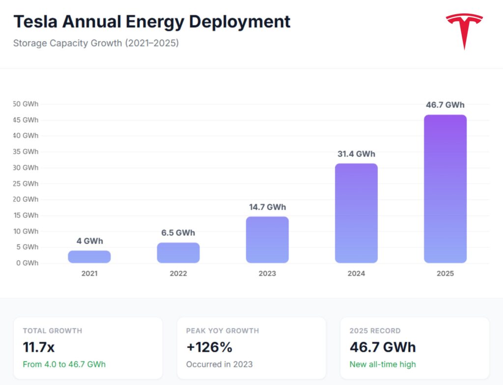 En 2025, Tesla a déployé un volume colossal de 46,7 GWh de stockage par batterie. Pour donner une idée de l’échelle, c’est assez d’énergie pour alimenter l’intégralité de la ville de Las Vegas pendant 5 jours consécutifs.
