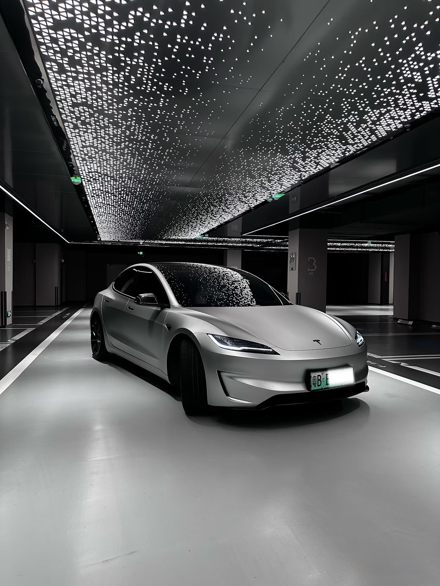 - L’Esthétique : Il s’agit d’une teinte plus foncée, qui s’approche d’un gris anthracite mat, conférant à la Model 3 Highland une allure plus sérieuse, discrète et « furtive » (d’où son nom). Sa nature multicouche lui permet d’évoluer subtilement selon la lumière.