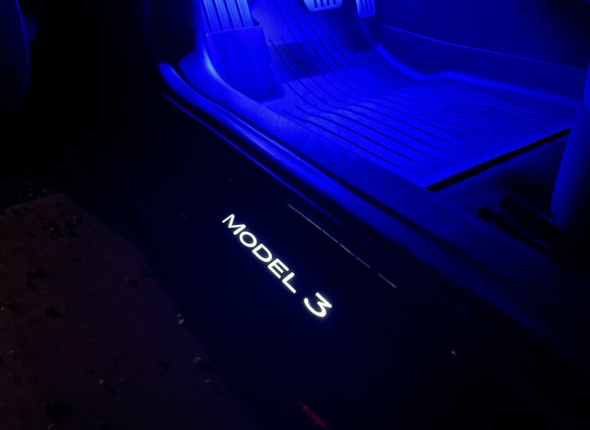 Sur cette photo vous voyez une Tesla Model 3 avec une incrustation de Led. Ce sont des kits qui s’achètent facilement et vous pouvez profiter d’un intérieur unique.