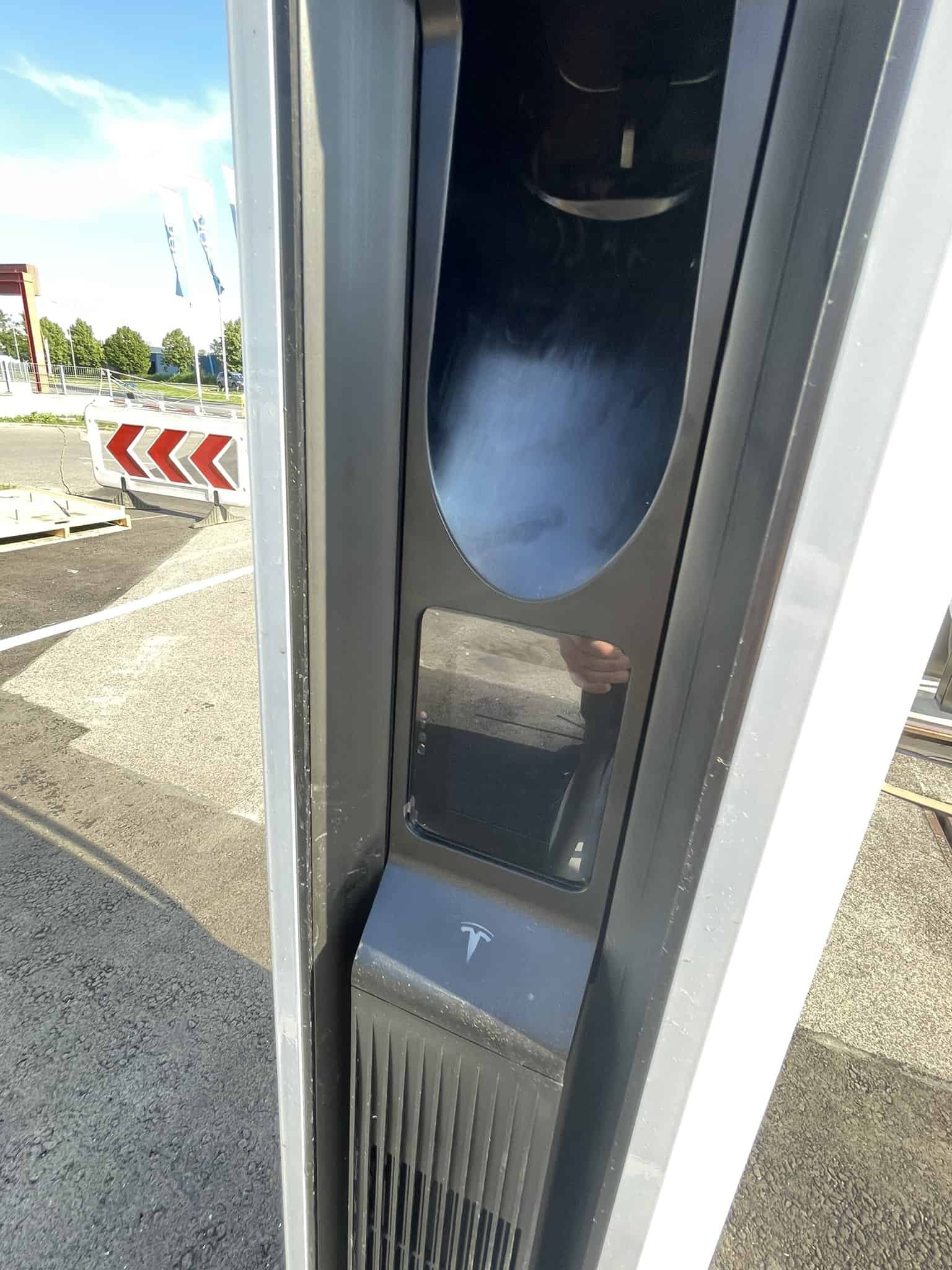 Le nouveau Supercharger V4 pourrait présenter une interface utilisateur simplifiée et ergonomique. Lorsque vous vous approcheriez de la borne, l’écran intégré sous le port de charge s’allumerait, affichant des instructions claires pour l’utilisateur. Bien que le TPE intégré ne soit pas encore en place, l’emplacement pour celui-ci est clairement visible. Cela laisse penser que les utilisateurs non-Tesla pourraient bientôt payer leur charge en insérant leur carte bancaire dans le TPE. Parallèlement, les propriétaires de Tesla pourraient continuer à payer via l’application Tesla, rendant la transaction aussi fluide que possible.
