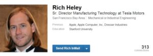 Depuis peu, un nouveau responsable de la production a été nommé chez Tesla Motors, Rich Heley.