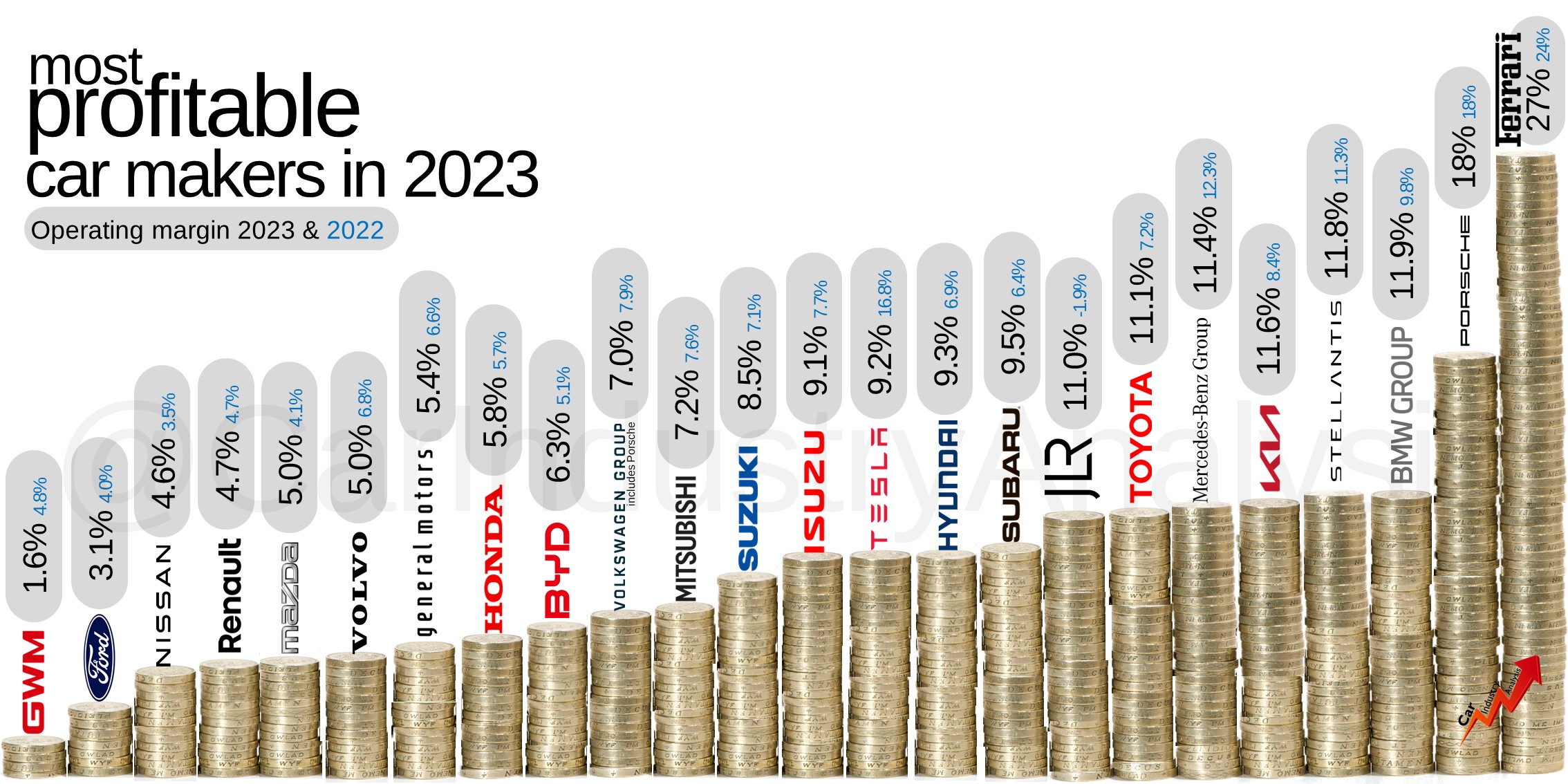 Quel constructeur auto a affiché la meilleure rentabilité en 2023 ?