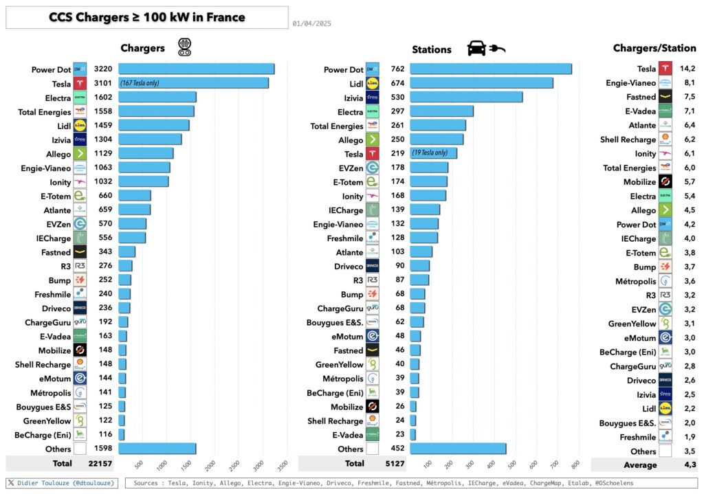 Avec plus de 22 000 bornes rapides et un marché porté par des acteurs variés (Tesla, Power Dot, Electra, Lidl, TotalEnergies…), la France est désormais un acteur majeur en Europe.