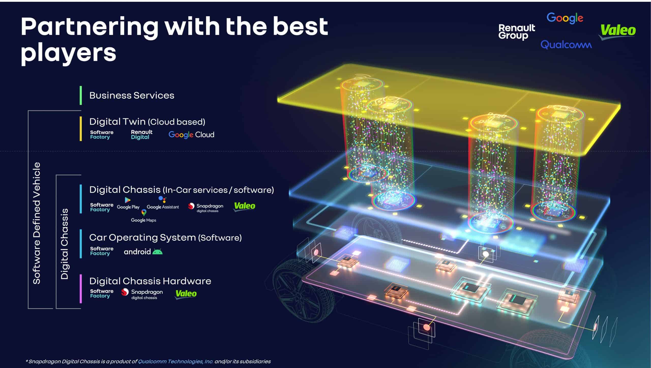 Dans le cadre de ce nouveau partenariat, Renault Group travaille non seulement avec Valeo, mais aussi avec Google sur le software et Qualcomm sur le hardware, créant ainsi un écosystème technologique complet. Renault Group se place ainsi en pole position dans le domaine de la SDV.