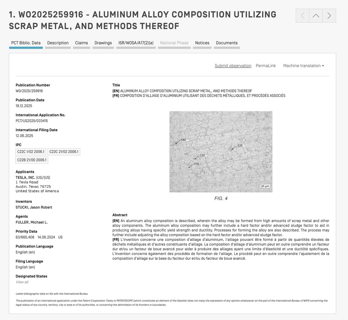 L’univers de l’automobile retient son souffle alors que Tesla dévoile la recette secrète de sa dernière innovation. Publié dans le brevet international WO 2025/259916 A1, ce document décrypté le 18 décembre 2025 offre un aperçu des secrets techniques de Tesla. Il révèle comment l’entreprise a réussi à transformer des déchets métalliques recyclés en composants structurels performants, posant ainsi les fondements d’une industrie automobile plus durable, sécurisée, et économiquement viable.