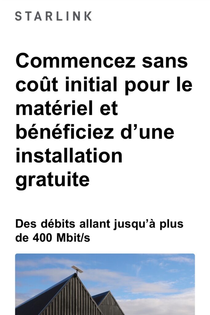 Jusqu’ici, le kit Starlink — comprenant l’antenne, le routeur Wi-Fi et le câblage — coûtait environ 349 € à l’achat.