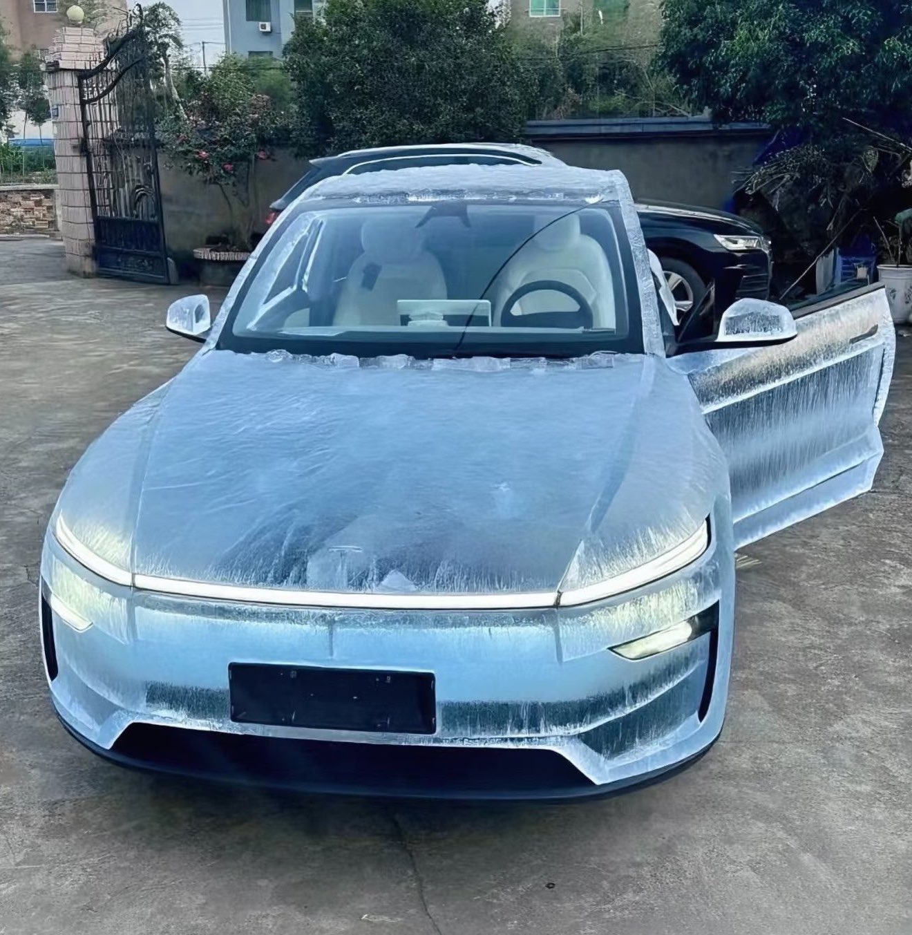 Une tendance originale met également en avant la Model Y dans des installations artistiques glacées, démontrant la créativité autour de la communication produit.