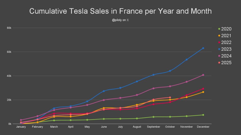 Avec environ 2,4 % du total des Tesla livrées dans le monde, la France représente un marché stratégique pour la marque, notamment grâce aux modèles leader du marché français des VE :