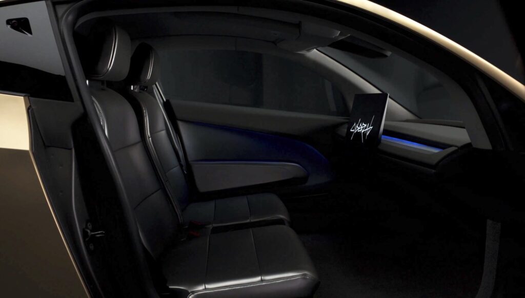 Pour compléter cette atmosphère futuriste, le Cybercab est désormais équipé d’une éclairage d’ambiance sophistiqué sur le tableau de bord et les portes. Cet éclairage subtilement intégré renforce l’ambiance intérieure et peut être personnalisé pour créer une expérience de conduite unique adaptée aux préférences personnelles des passagers.
