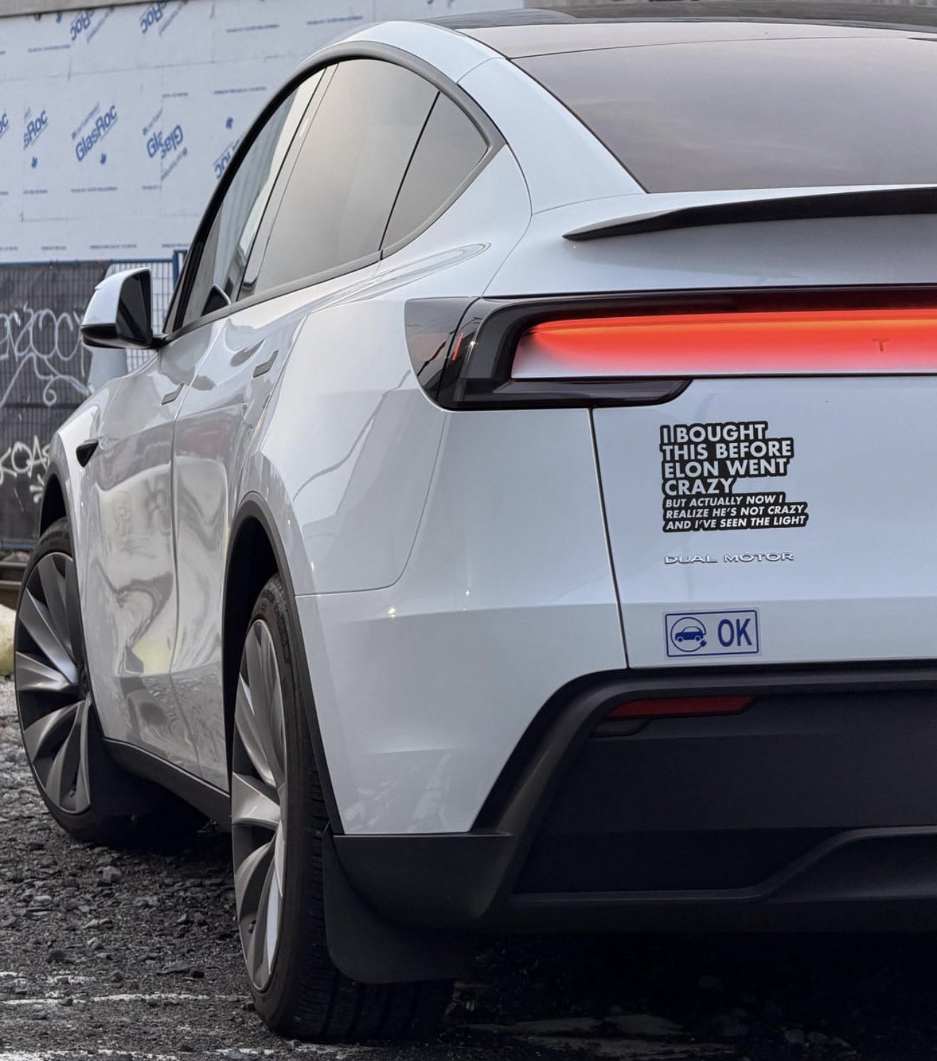 “There should be an addendum to the bumper sticker that’s like, ‘I bought this car before Elon turned crazy. Actually, now I realize he’s not crazy, and I’ve seen the light.’”