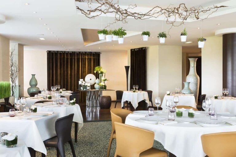 L’ambiance du restaurant Chiquette joue les rythmes apaisants dans une géométrie Art Déco laissant une large place à la lumière. Un esprit galerie d’art dedans, où l’œuvre d’Arthur Simony raconte de nouvelles histoires et un style contemporain où le feu de cheminée 2.0 amène chaleur et confort.