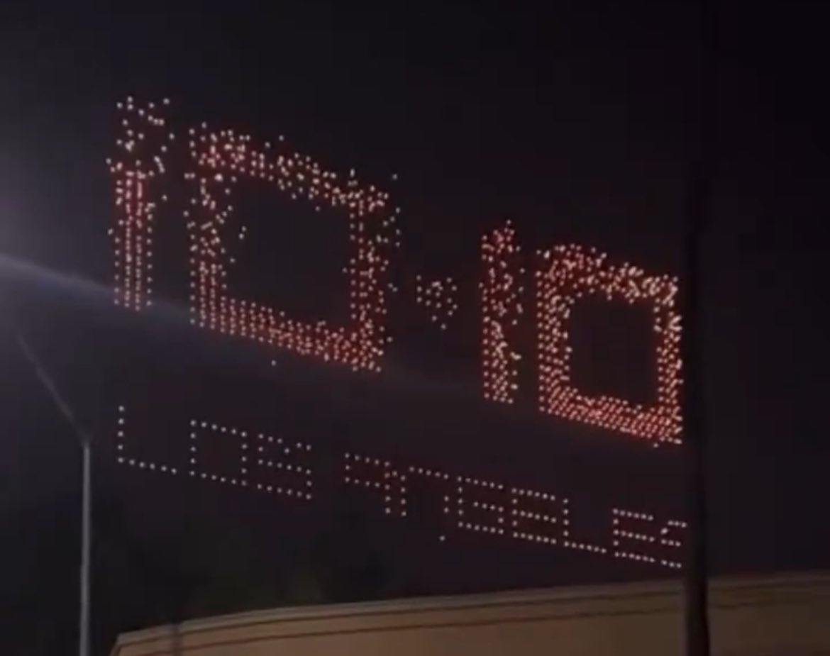 Le clou du spectacle ? Une gigantesque représentation du visage d’Optimus, le robot humanoïde emblématique de Tesla, a été formée dans le ciel nocturne par des centaines de drones lumineux. L’image capturée montre le logo 10.10 avec Los Angeles écrit en dessous, confirmant ainsi la date et le lieu de l’événement.
